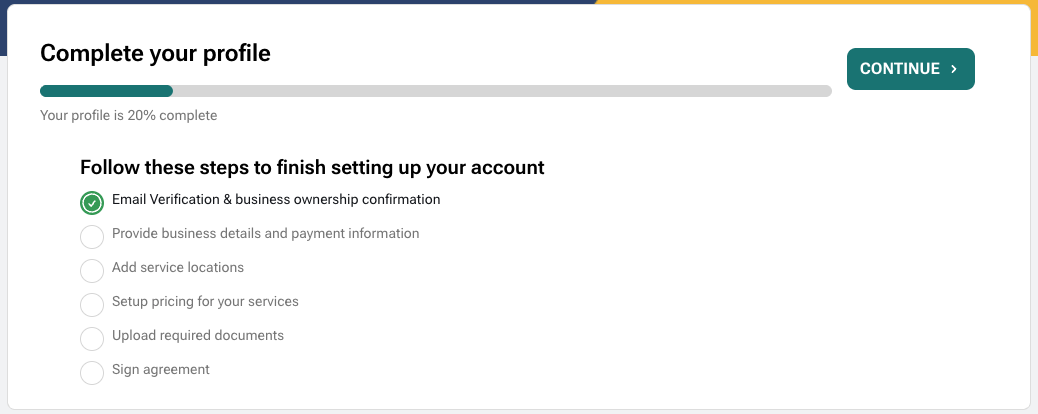 Once your business verification has been submitted, you can continue onboarding your organisation by completing your profile.