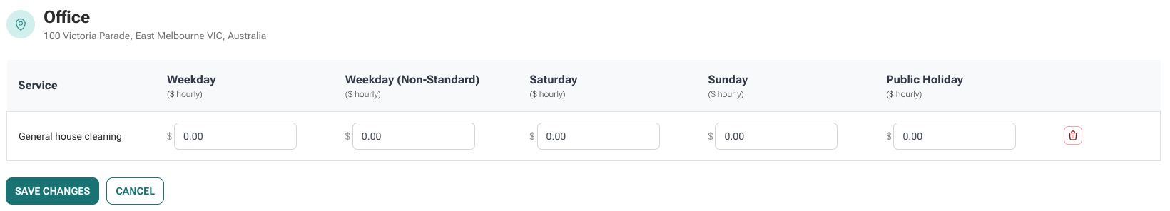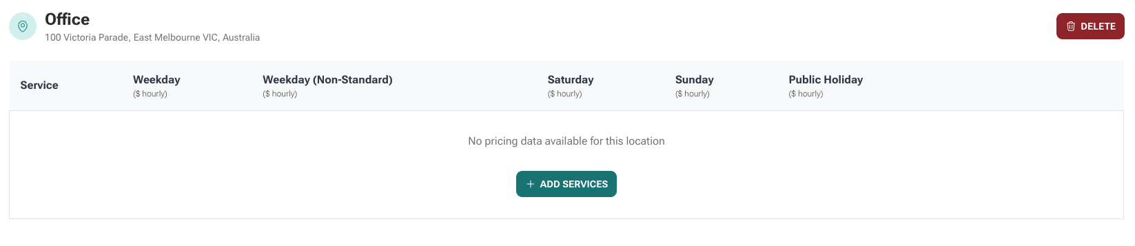 Finally enter the rates for the services you have selected. We require Weekday, Weekday (non-standard), Saturday, Sunday and Public Holiday rates.