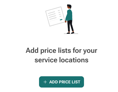 The next step is to setup your pricing for each location and services you offer. To get started, click on the 'Add price list' button.